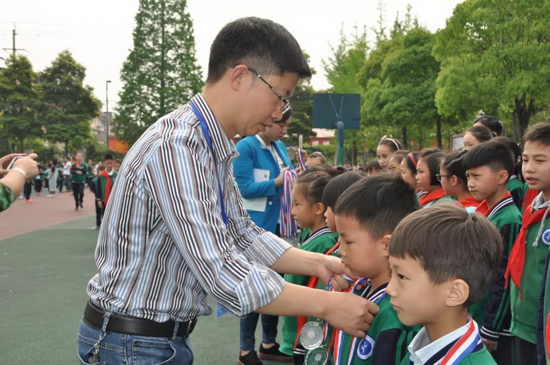 叶主任为他们颁发奖牌。