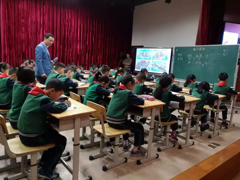 The first class was taught by Li Liyuan whom from Shiyang primary school. By grasping the key words and various forms of reading, she lets the children understand the text content, arouse the students' resonance, and enjoy the childishness and children's interest in the feeling and imagination of entering the situation.