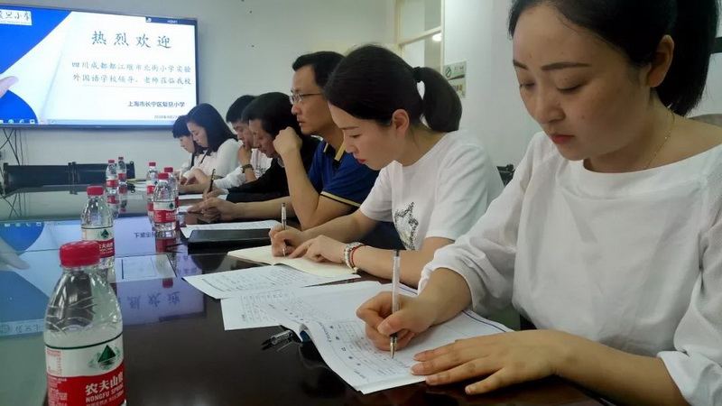 In the conference room, the principals of the two schools made exchanges on the recent development of their respective schools. During the meeting, Principal Mr. Dong made detailed arrangements for our teachers. He also introduced school’s director Ms. Chen, the director of the General Affairs Department Mr. Chen, Chinese teachers Li Weilu and Li Yanhua, math teacher Xie Dingyuan and English teacher Chen Xiaolei. Finally, Principal Mr. Ma made demands on our teachers.