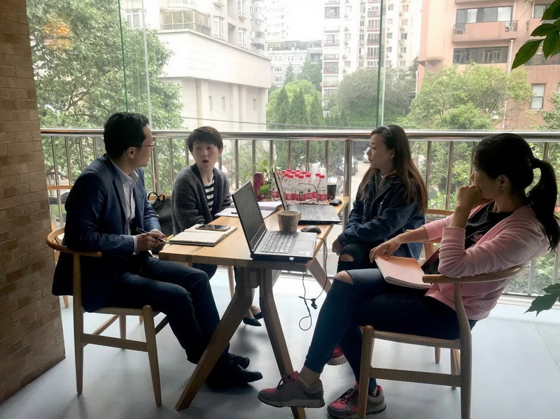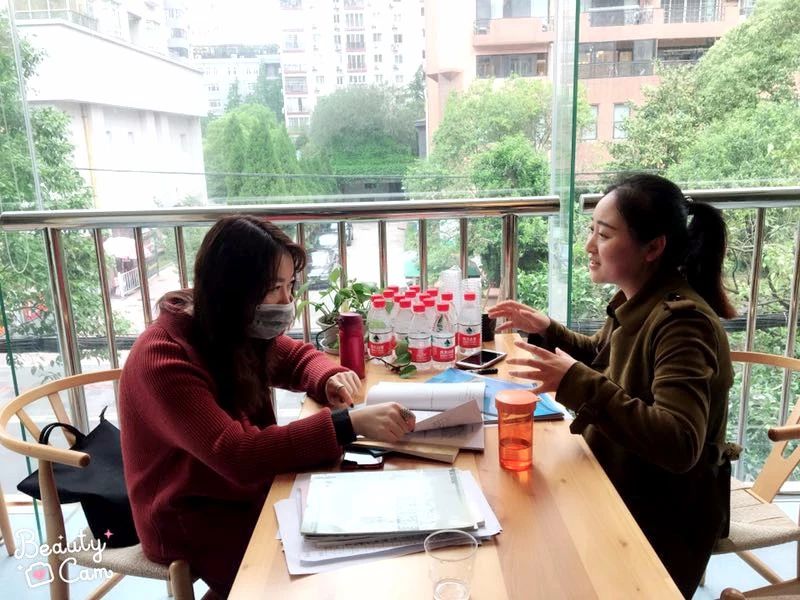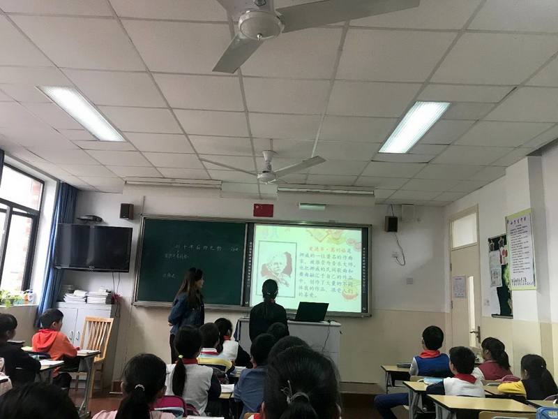 Our Chinese teachers Li Kun and JiaXiaojiao, math teacher Hu Jian made exchanges on homework design and evaluationmethods with their teachers from Shanghai Fudan Primary School. They benefited alot.