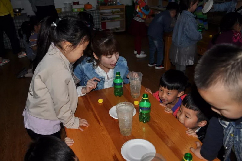 “The dancing raisins” is the science innovation courses.Ms Liu Yajie andMs Chen Nana using different pointcuts and different test methods to trainstudents' observation ability and concentration ability.