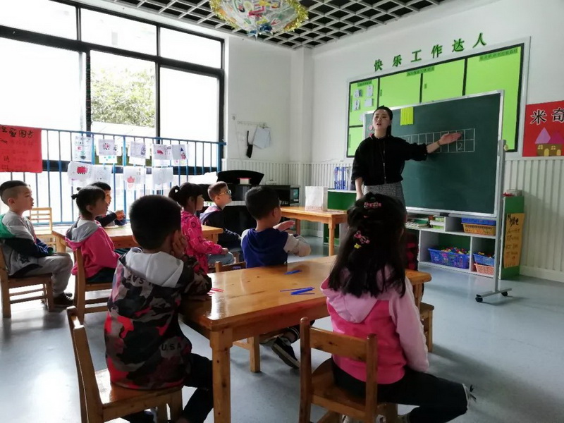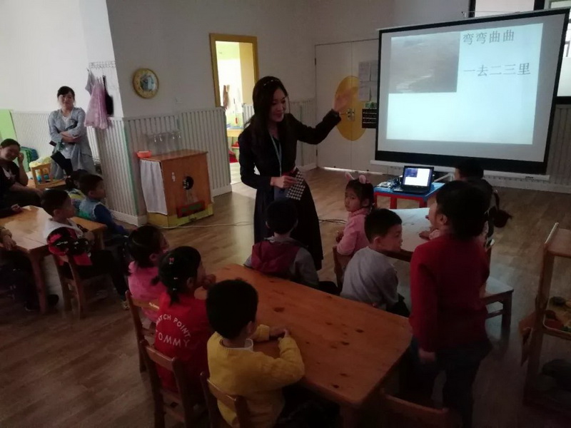 “The village” is a language literacy course. Ms Zhao Li led the students to learnfrom the words and sentences.