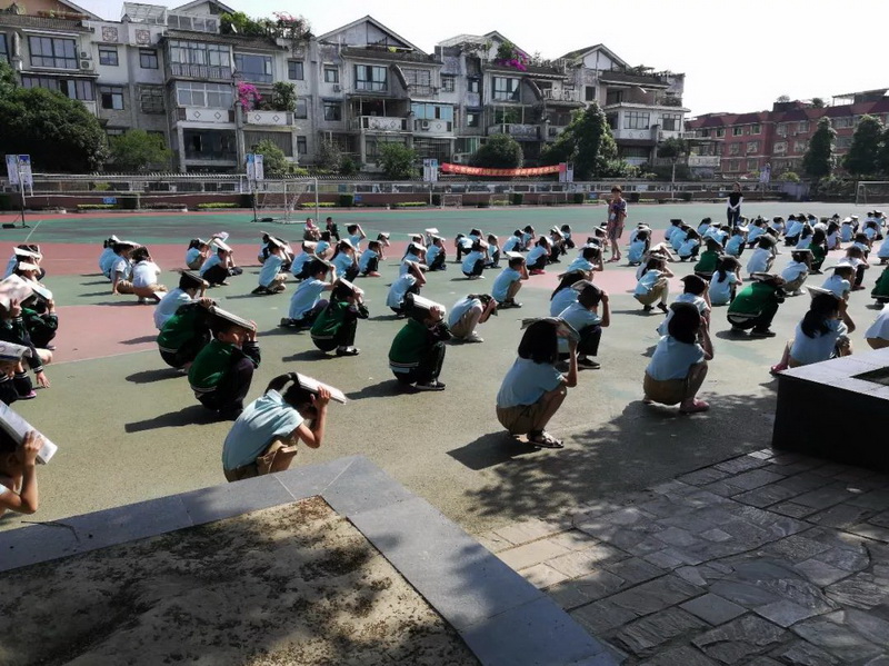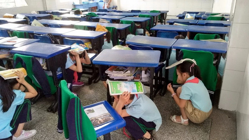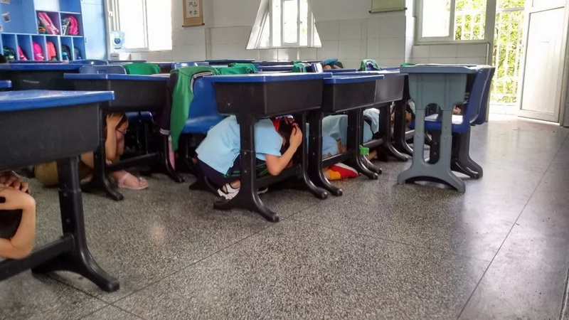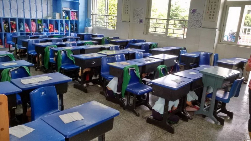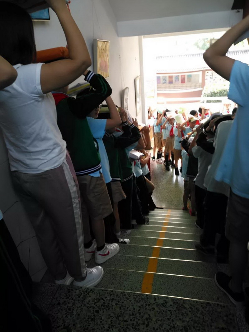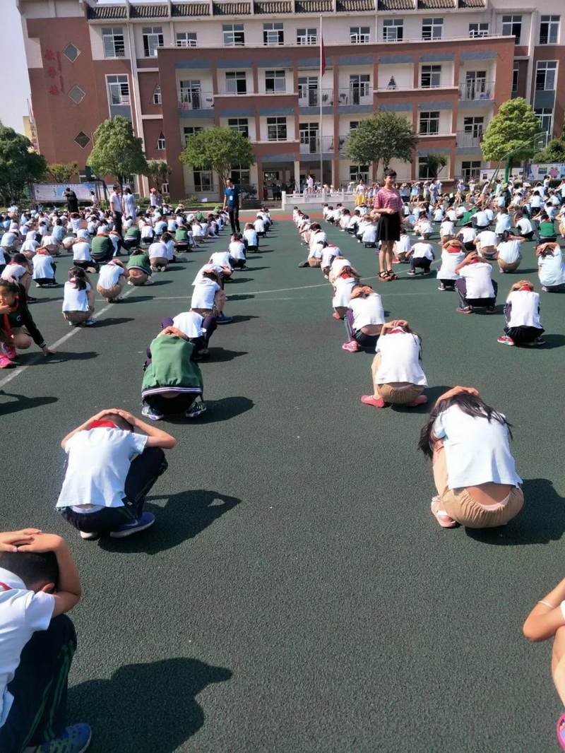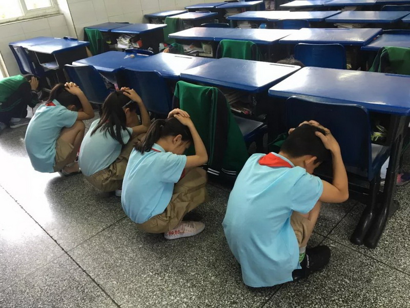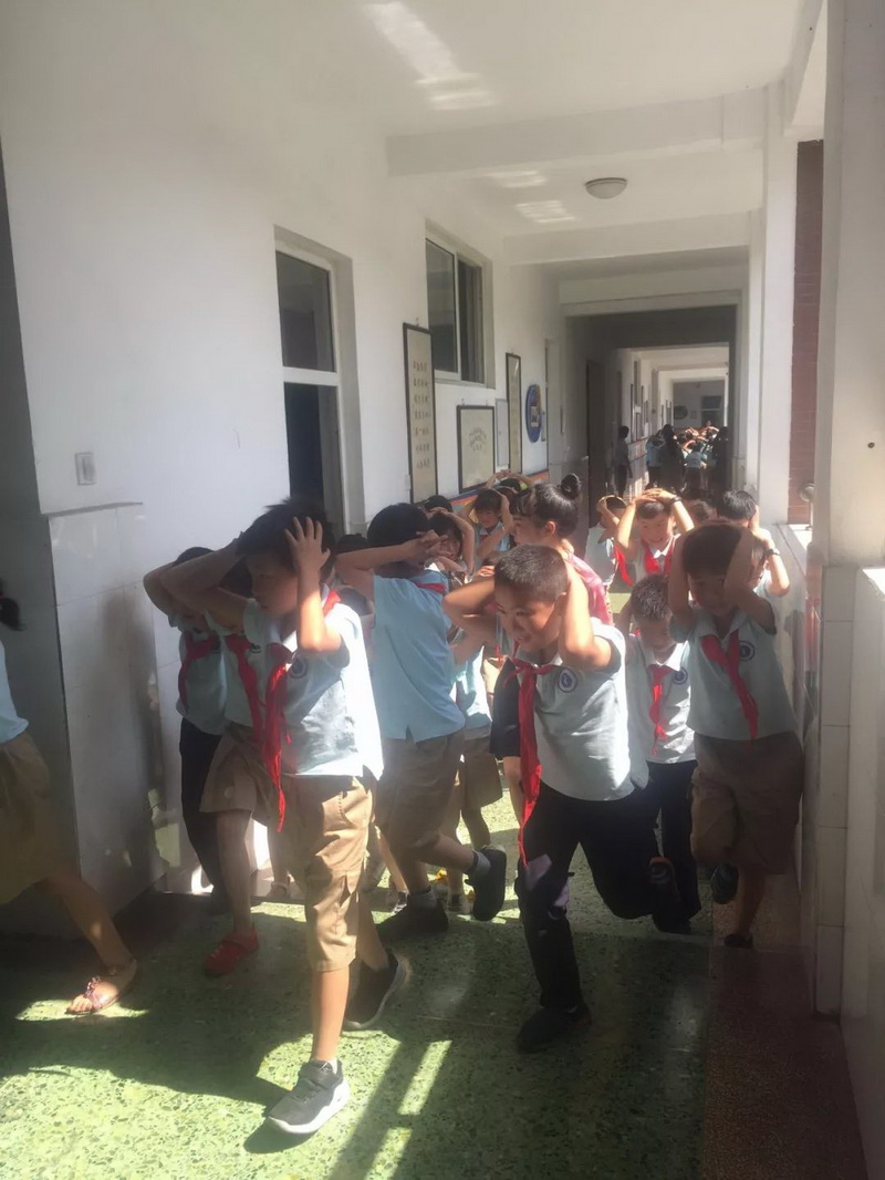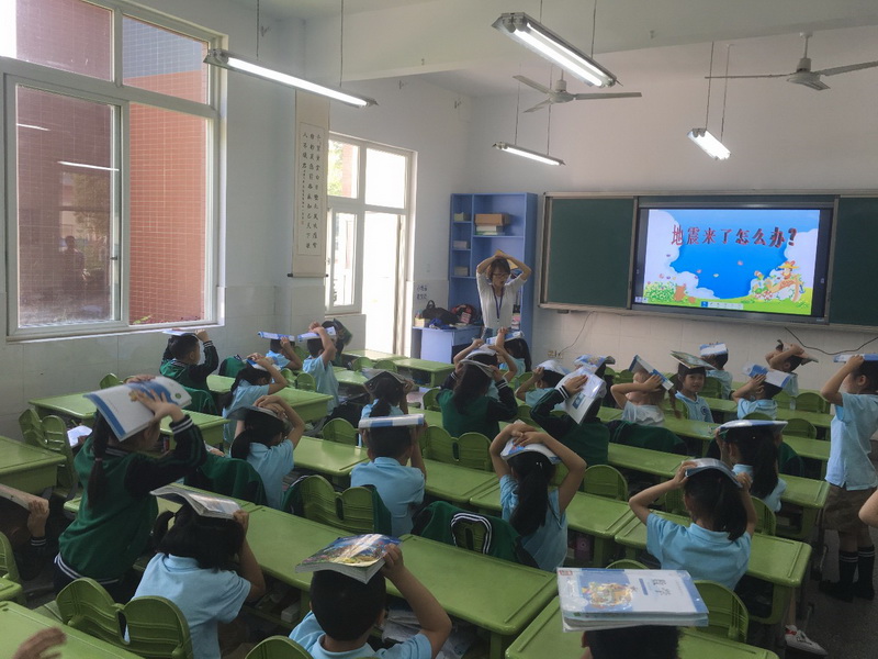 our school organized all teachers and students to conduct "Earthquake emergency evacuation drills."