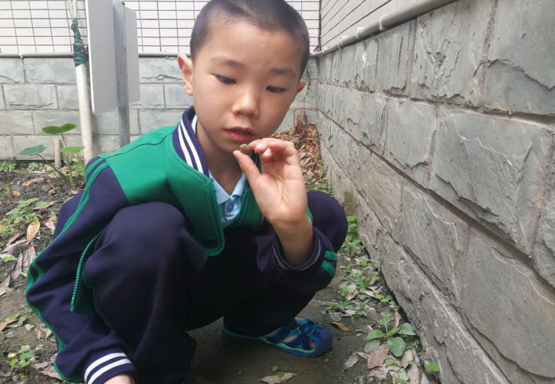 我还发现了一只小蜗牛呢!顺便好好观察一下它。