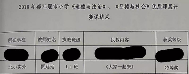 Our Chinese teacher Jia Tingting took part in the excellent class exhibition of Dujiangyan primary school, and she got the special prize for this event.