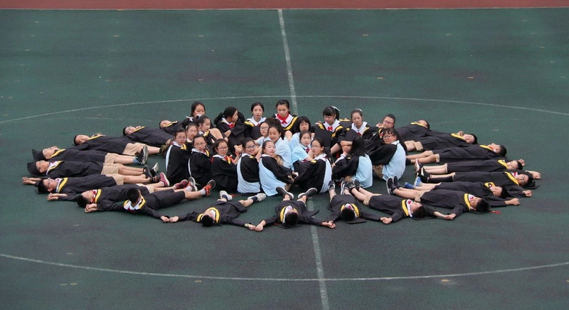 On June 21st, all the teachersand students in grade six held a commencement ceremony in the academic hall.