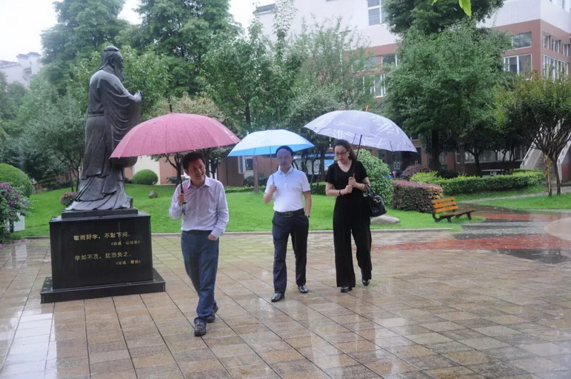 On July 11th,t he headmaster Zhang Xiaoqiang from Sichuan Xuanhan Shiyuan Foreign Language School visited our school accompanied by Tang Xuemei, the director of Network Training Center for Sichuan Education Cadre. Hu Tao, vice principal of our school, Wu Hongyan , director of curriculum development center,Ye Tiping, director of student development and guidance center accompanied them on the tour.