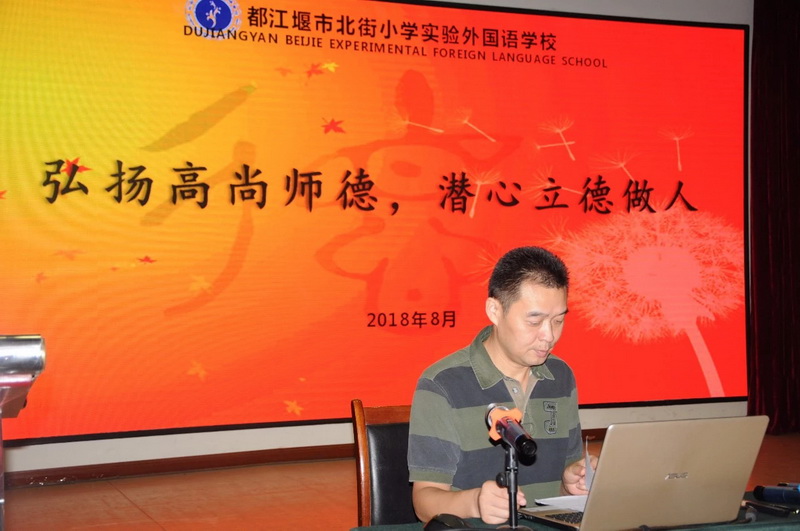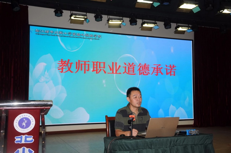 The Teacherof the School's Labor Union, Mr. Chen Binbing, gave a training on “Promoting the Morality of Teachers and Promoting the Cultivation ofTeachers”