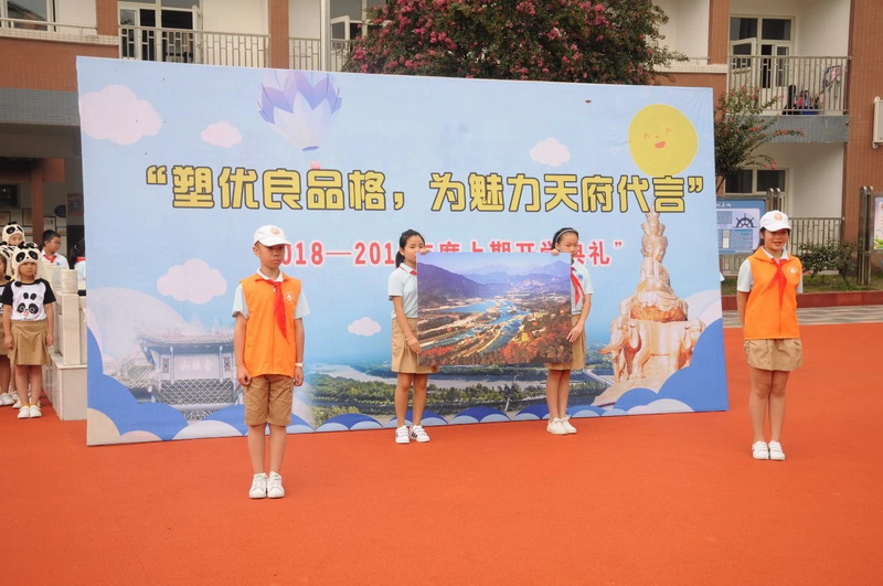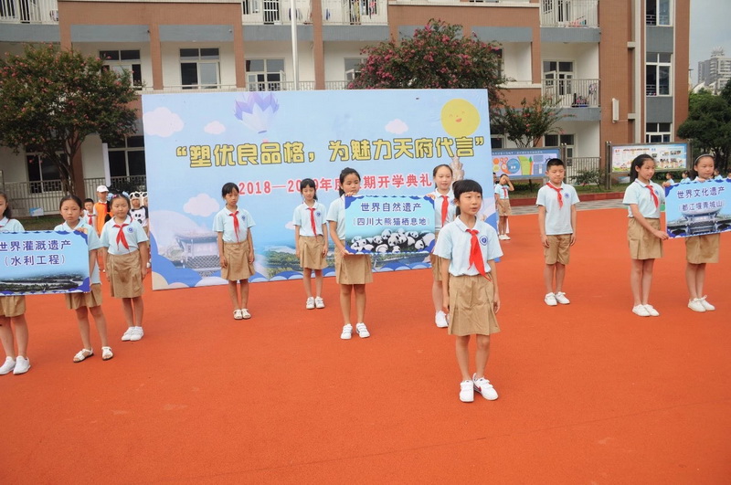 时维九月,序属三秋。2018年9月3日,我们相遇在都江堰市北街小学实验外国语学校参加“塑优良品格,为魅力天府代言”开学典礼!