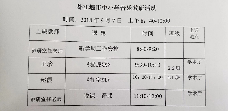 2018年9月7日星期五,都江堰市中小学音乐教研活动在我校举行。