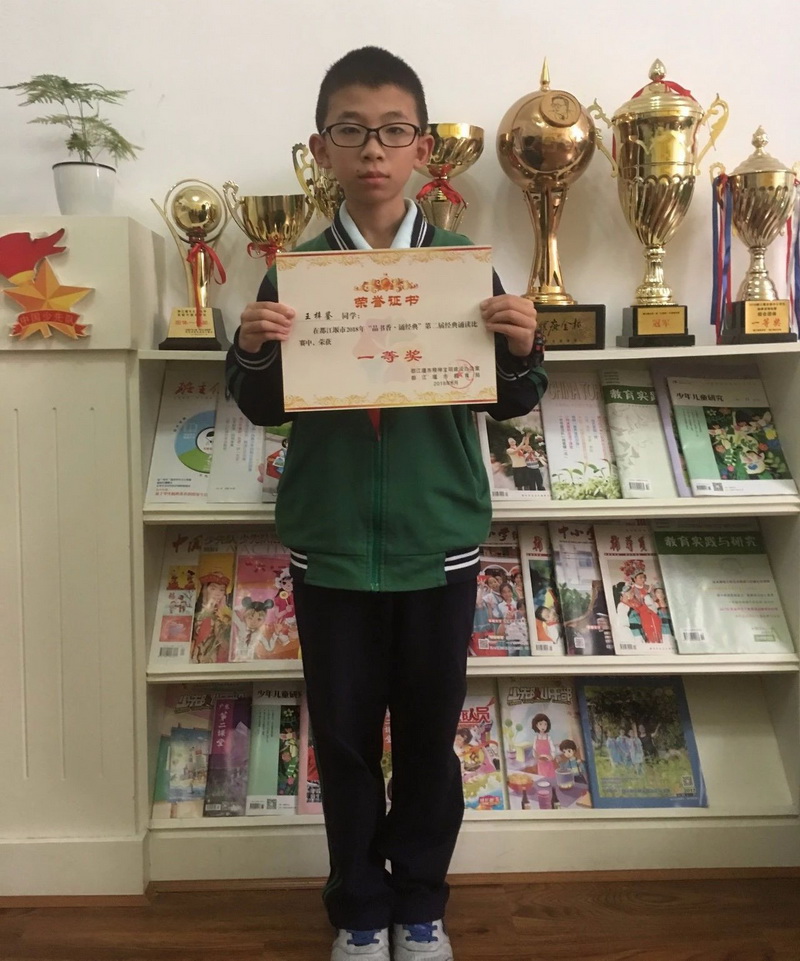 参加“诵经典”活动,阴鸣辰朗同学荣获“诵经典”低段组一等奖;王梓鉴同学荣获“诵经典”高段组一等奖。