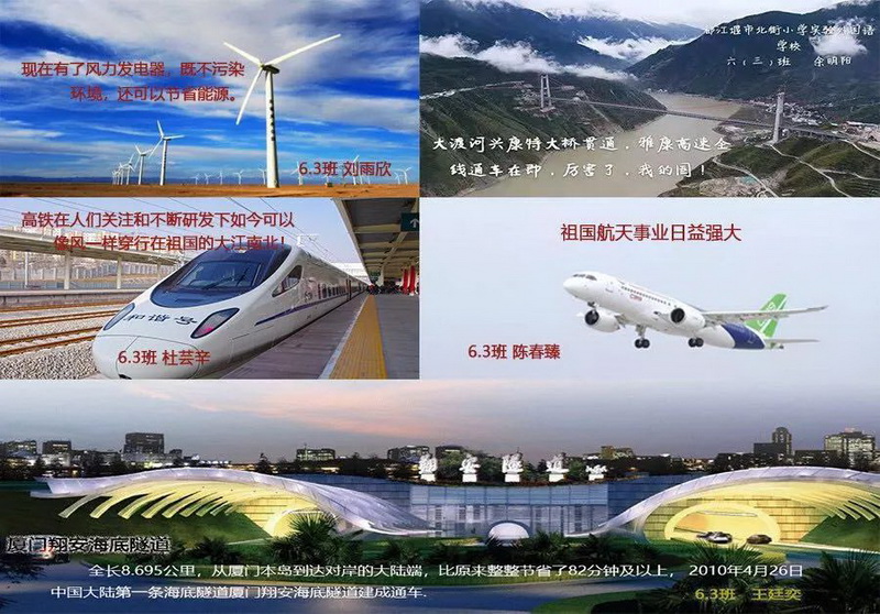 Class 5 Grade 6 Highway crossing mountains, fast rail throughout the country,convenient, fast, low carbon and health. People live in beautiful surroundings.