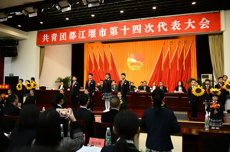 10月15日上午,市委礼堂里,一句句优美的的童声,一段段动人的语言响彻会堂。我校58名优秀少先队员代表全市少先队员,在共青团都江堰市第十四次代表大会上献词。充满朝气的面孔,充满活力的形象,充满激情的朗诵,获得在场领导和与会人员的阵阵掌声。