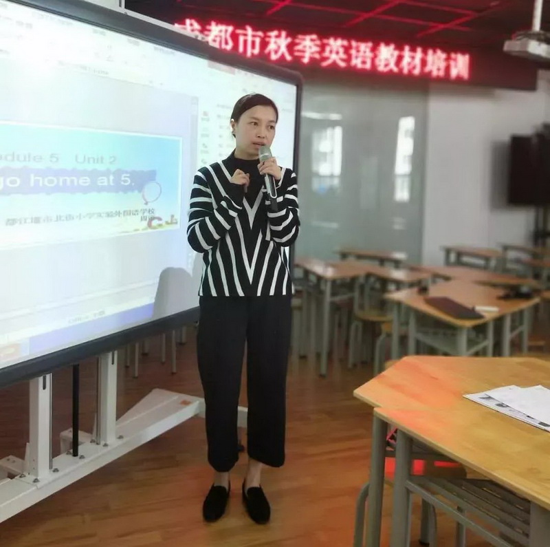 2018年10月18日,成都市秋季英语教材培训在成都市东城根街小学举行。我校周丽老师代表都江堰市承担了这次示范课展示活动。