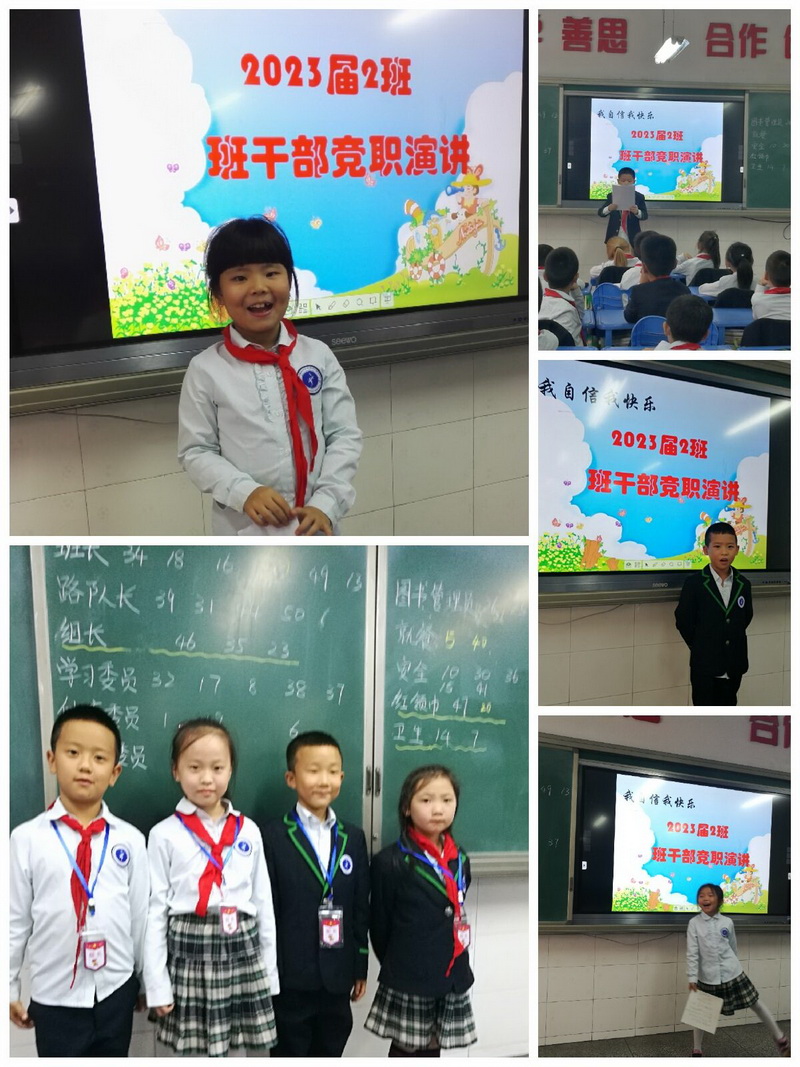 在主持人宣布“班干部竞选”活动开始后,同学们便井然有序地上台发表演讲。