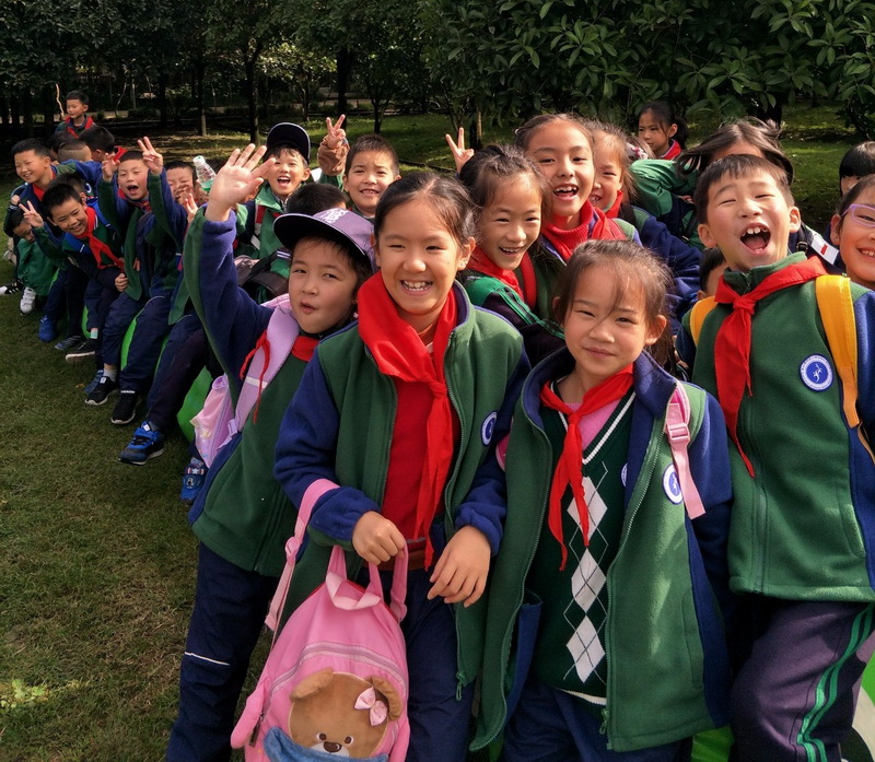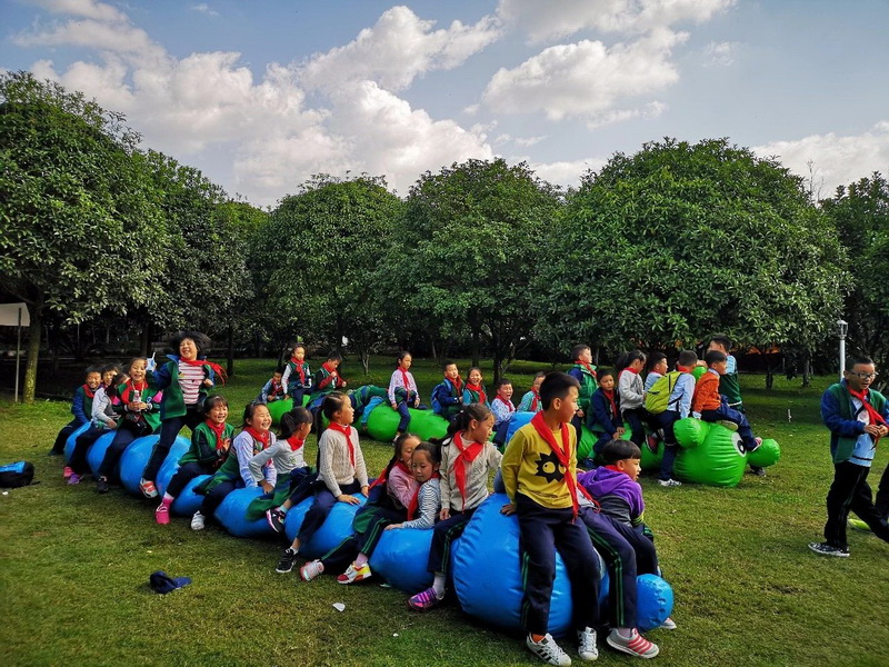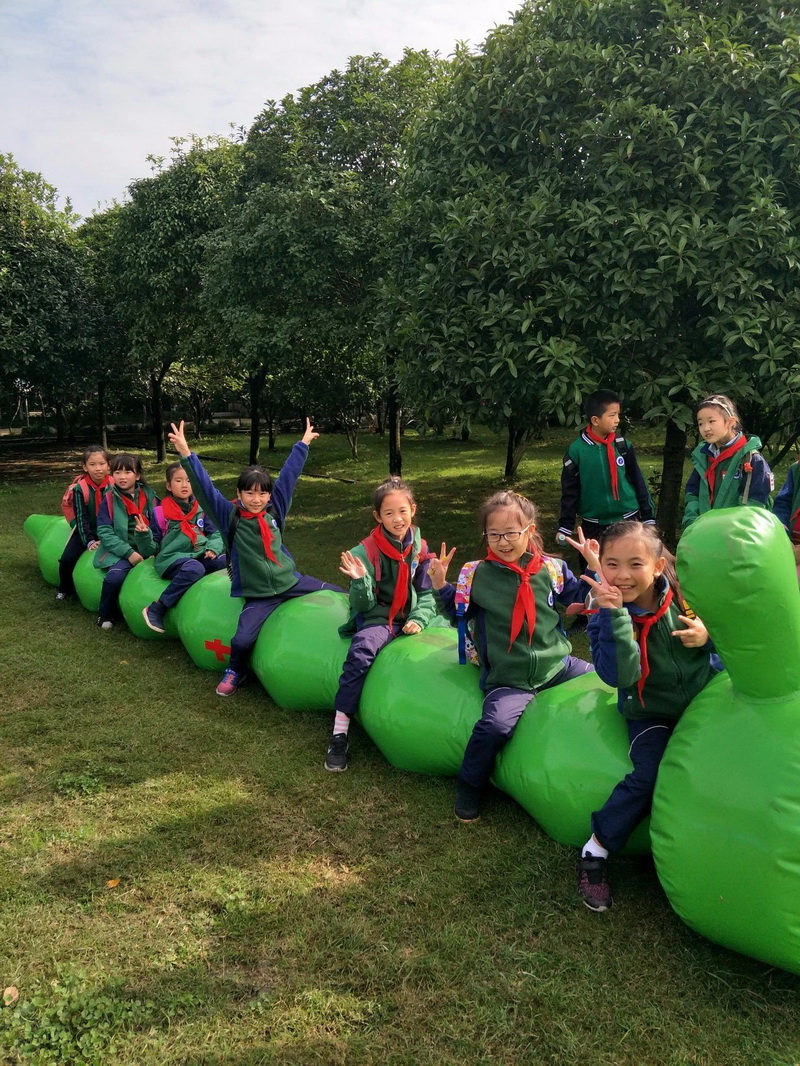 Sunshine all the way, laughing allthe way, on October 23rd, children from Grade three embark on the yearning fornature and set out for the qincai farm in Xindu.