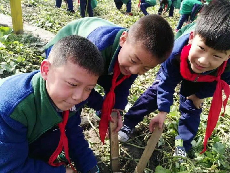 在这里,孩子们与大自然进行了亲密的接触,体会到了大自然的美妙,同时,还亲自体验了一次田间劳作——挖红薯。大家其乐融融,尽情分享劳动的喜悦。