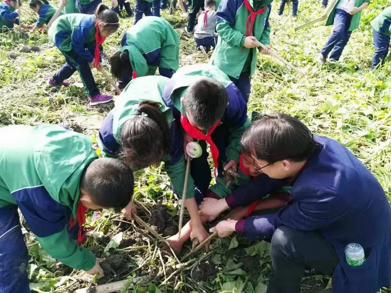Here, the children have a close contact with nature, experience thebeauty of nature, but also personally experienced a field work - digging sweetpotatoes.Everyone happy, enjoy the joy of labor sharing.