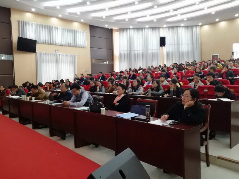 Pan Xiaoping, an expert on English teaching , made a lecture on the training of teaching materials for theteachers of the conference.