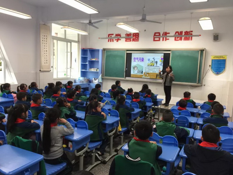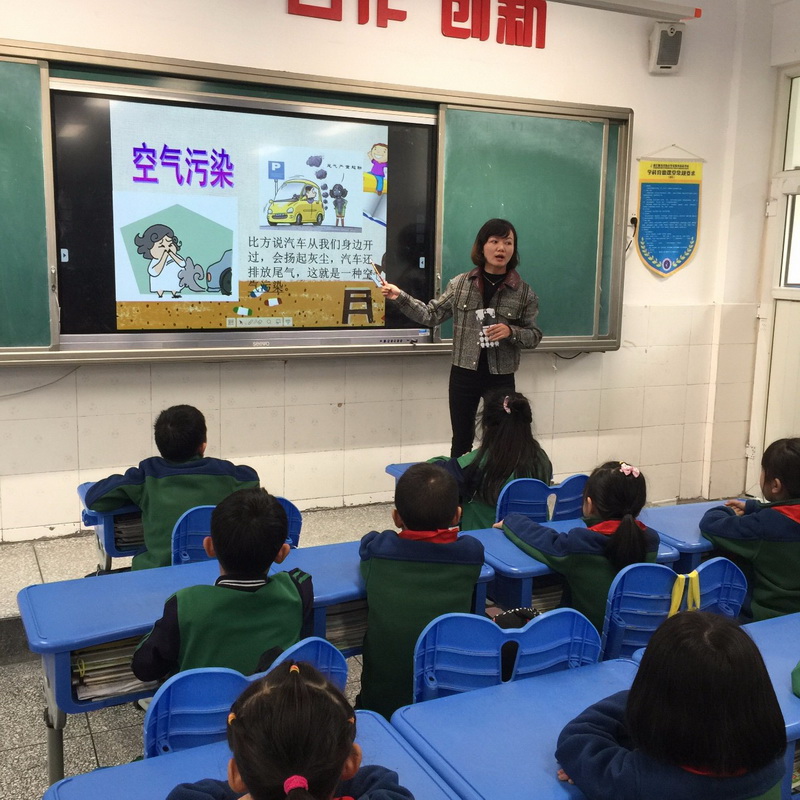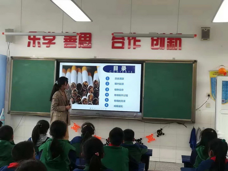 一位漂亮的姐姐从烟草的起源、成份、吸烟的危害、戒烟的好处等方面带着孩子们了解了烟草的知识。