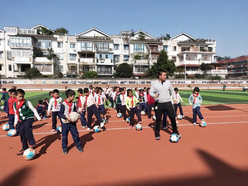 Chen Gongyi's father let football into the campus, a perfect set offootball exercises let children master simple football skills.