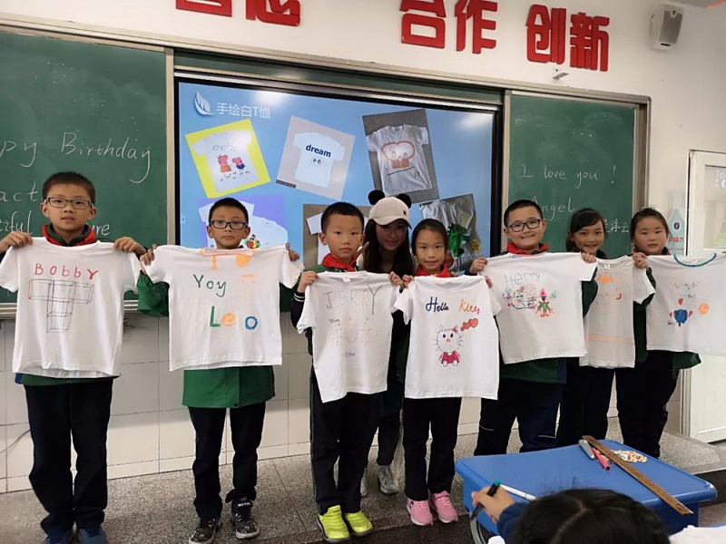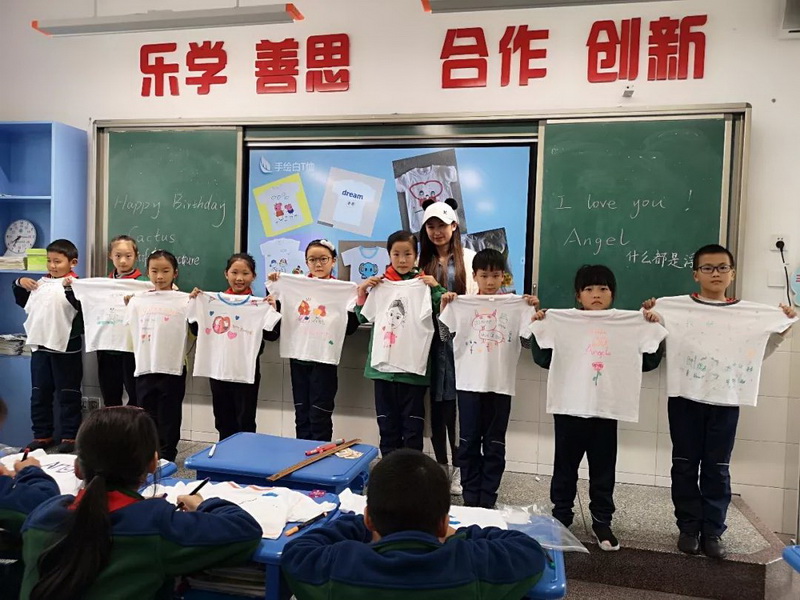 Jiang Ruini's mother gave a lesson of "Creative T-shirt",which let the children experience the real connotation of "learning,thinking, cooperation and innovation" in a relaxed interaction.
