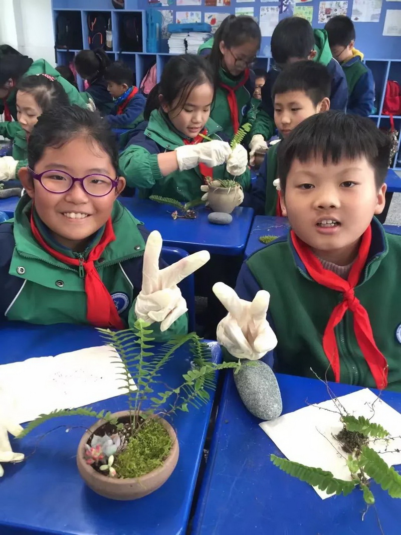 Yue Xinyu's mother brought us bonsai. Under the guidance ofmother-in-law, children give full play to their imagination and make their works more charming and artistic.