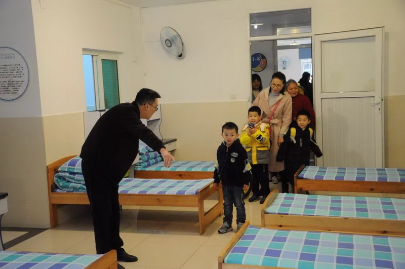 生活老师告诉小朋友们,如此整洁的床铺都是由哥哥姐姐自己整理的,听到这,家长们也赞叹不已。