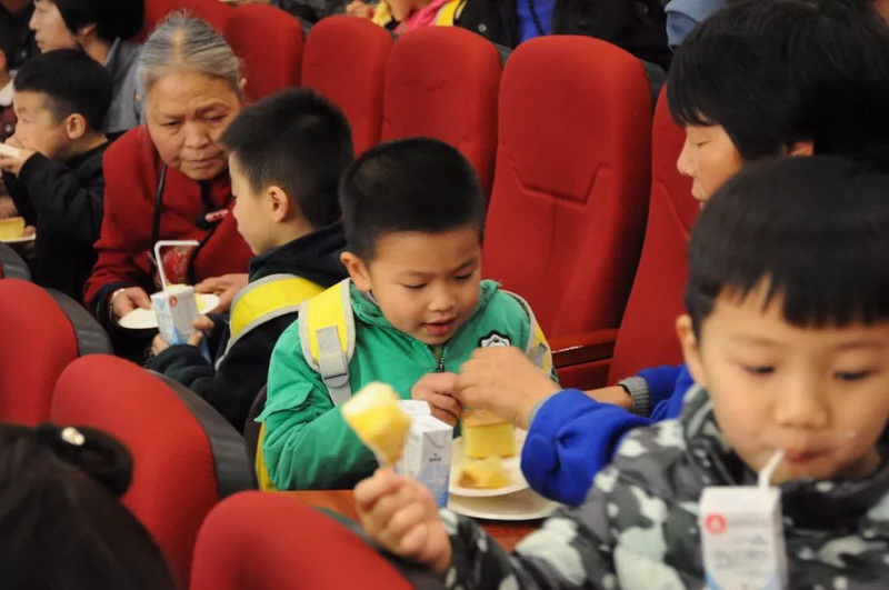Our life teachers had prepared cakes and milk for thechildren early! The children were enjoying the cakes made by our school.