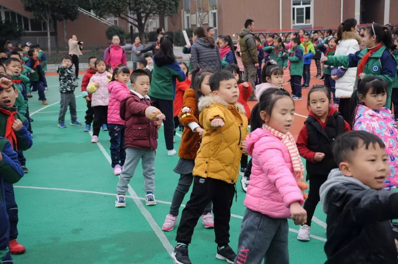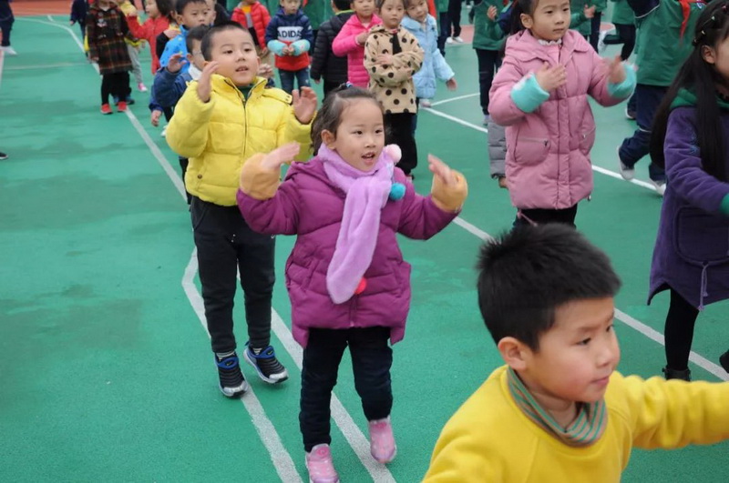 How time flies! It's time for the big break! Childrencame to the playground ahead of time. Under the guidance of the teacher ofphysical education, the children are carefully in the team, just like a pupil.