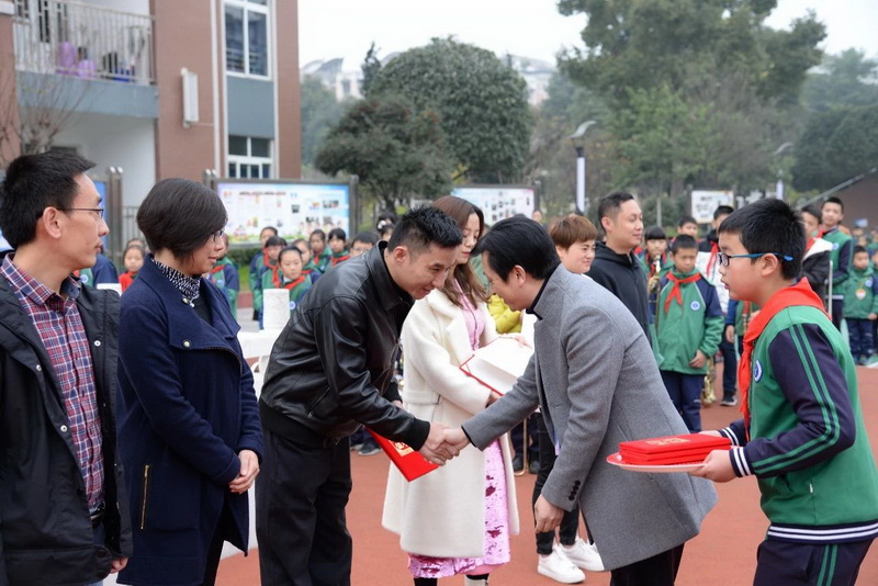 马校长为“书香家庭”颁发荣誉证书