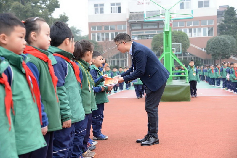 胡校长为“书香班级”颁发奖状