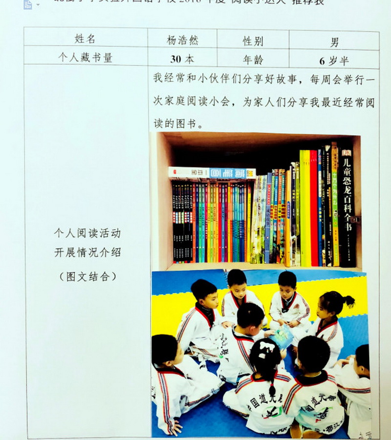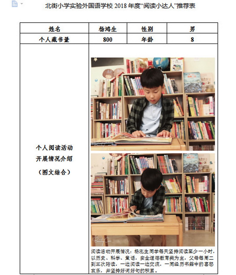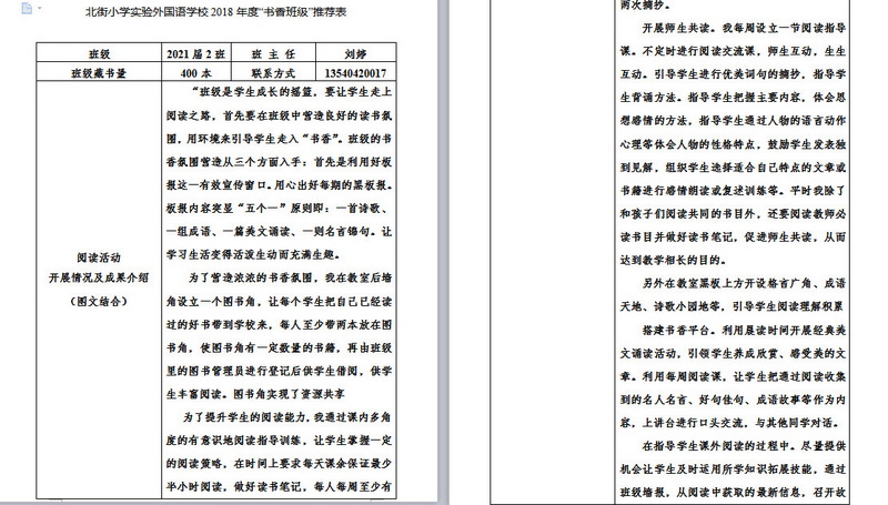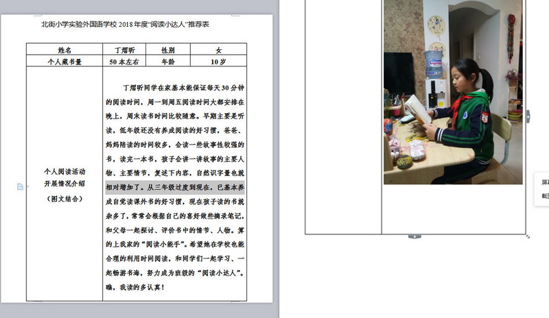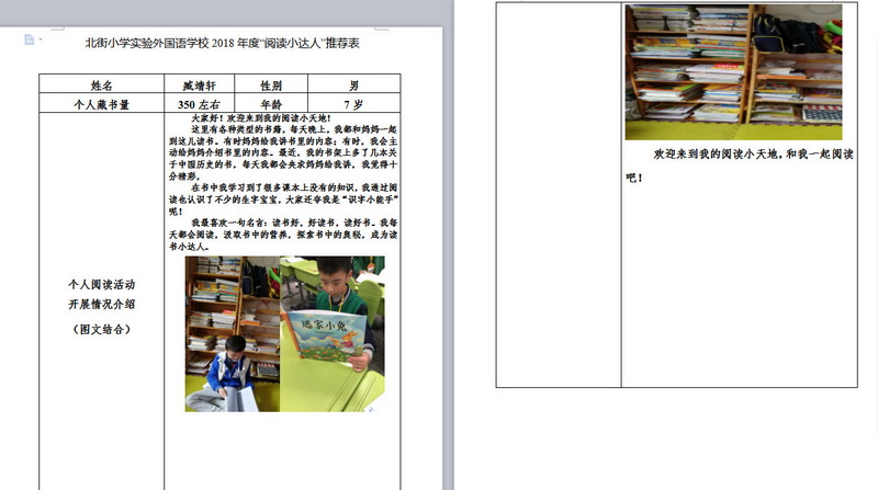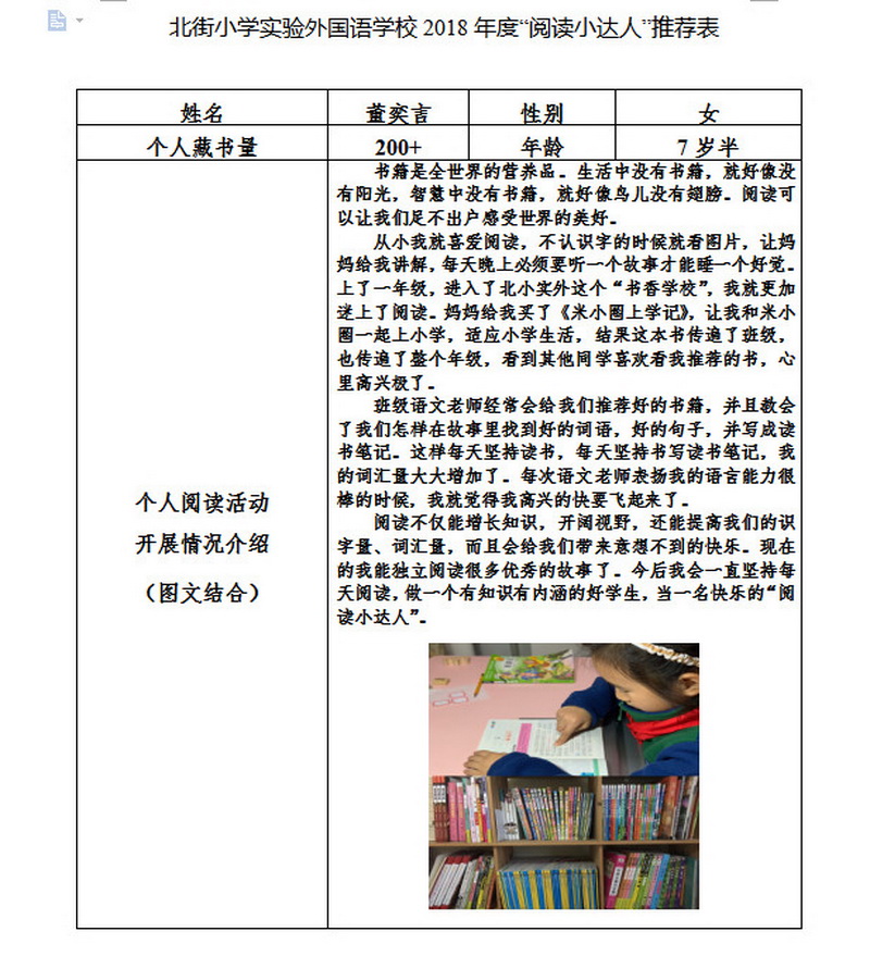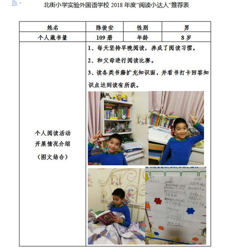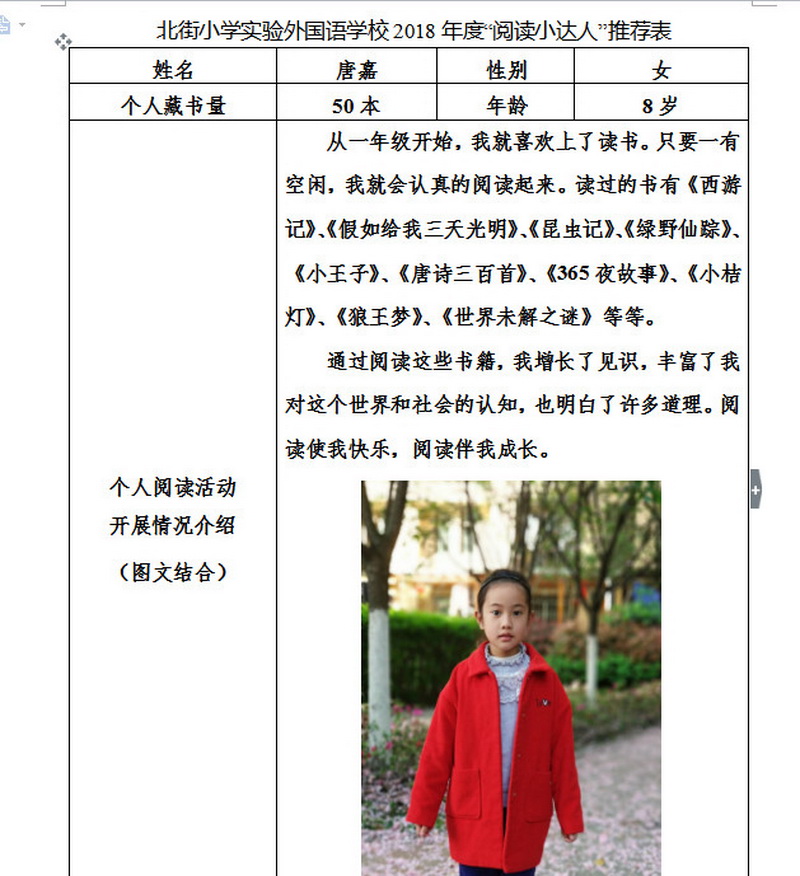 In order to makereading a habit of everyone in our school. Since 2017, our school has advocatedto all teachers, students and parents to calm down, hold up books and makereading a habit. Over the past two years, a number of outstanding children,excellent classes and excellent families have emerged.