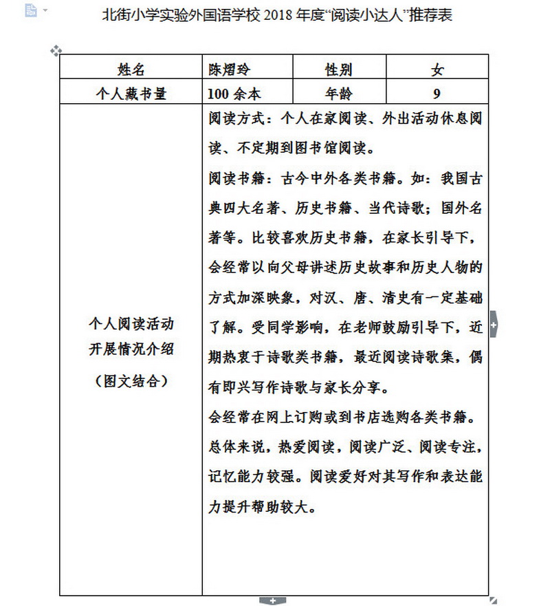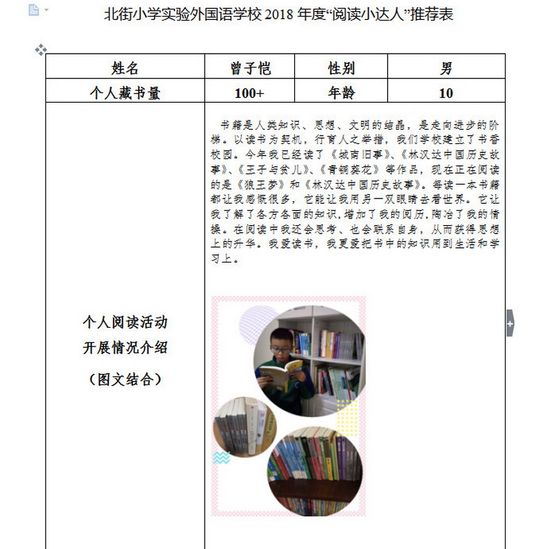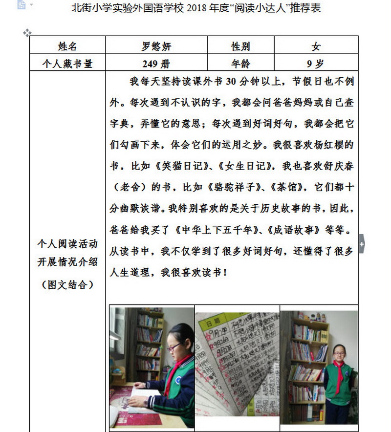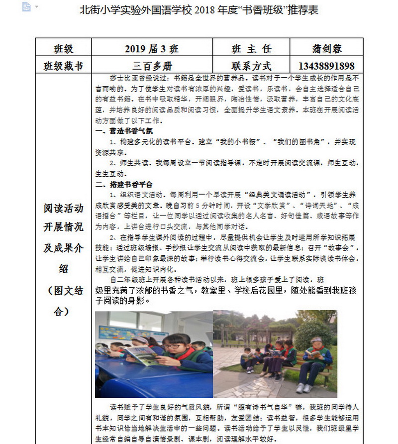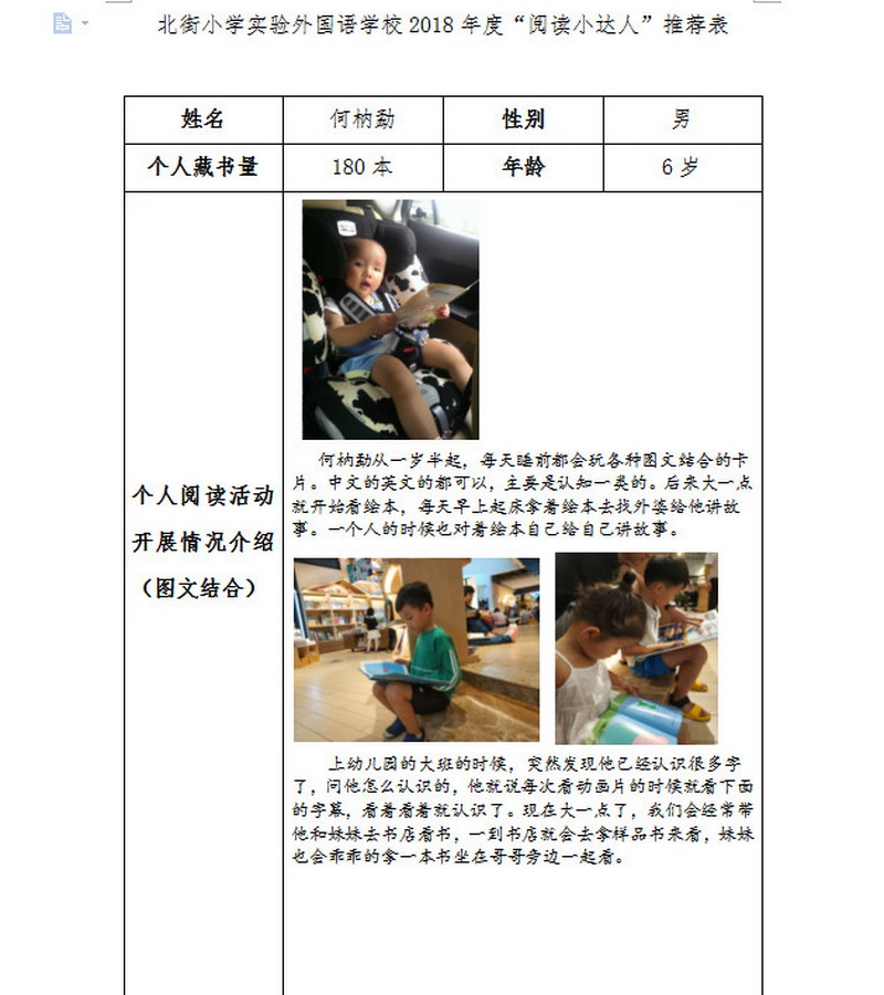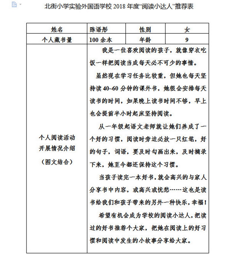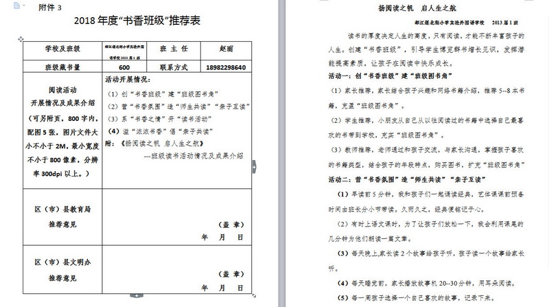 In order to makereading a habit of everyone in our school. Since 2017, our school has advocatedto all teachers, students and parents to calm down, hold up books and makereading a habit. Over the past two years, a number of outstanding children,excellent classes and excellent families have emerged.