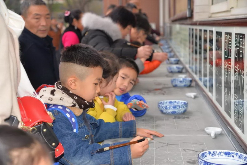 Then, the children walked along the school's calligraphy culture wall to the dormitories .