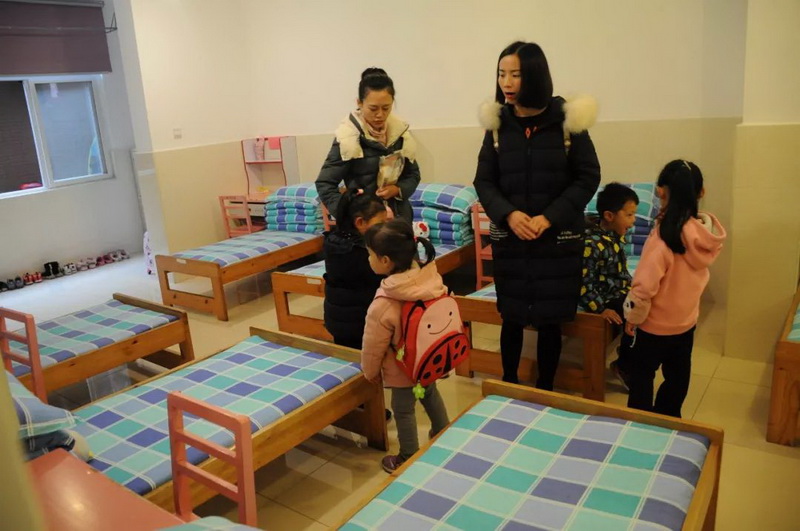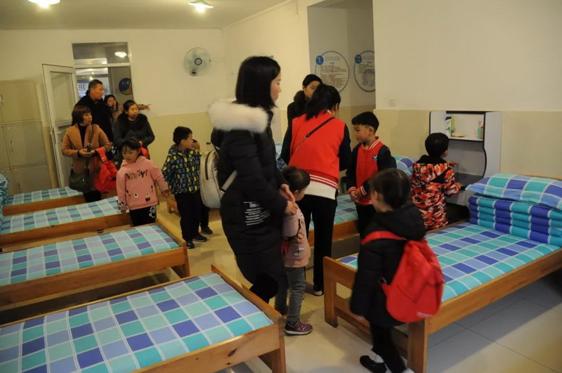 然后,小朋友们来到了哥哥姐姐们的宿舍。小朋友和家长们对如此整洁的床铺都赞叹不已,生活老师告诉他们这都是一年级的孩子们自己整理的。