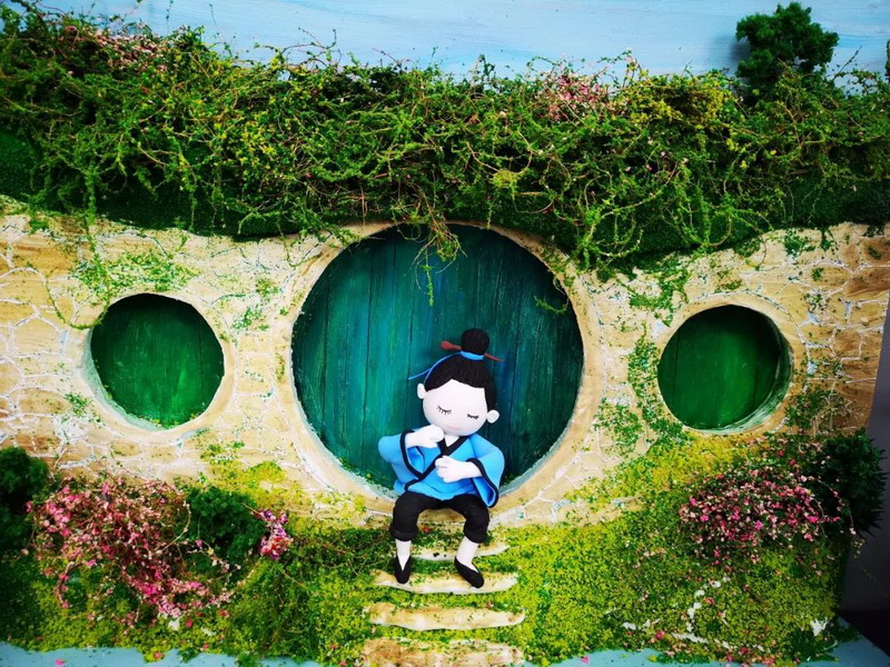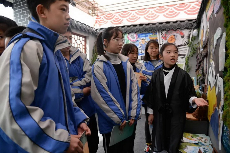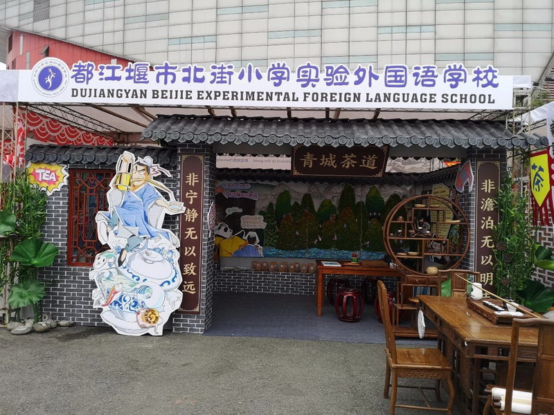 At the exhibition site ofthe 13th art festival of middle and primary school students in Dujiangyan city.Beijie Experimental foreign language School carried out art education achievement display.