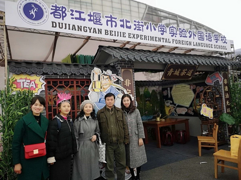 Feng Enxu , director of artand sports office of Sichuan Provincial Education, Science and Technology Institute,Art teaching and Research Staff. Gu Min, Art Teaching and Research Staff of Chengdu. Jiang Peishan , teacher of Dujiangyan came to our school workshop and gave highevaluation to the innovation of materials.