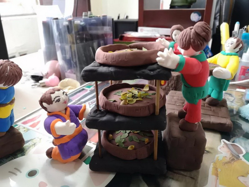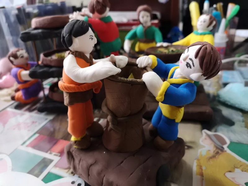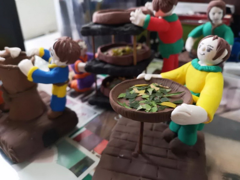 Clay is used to representscenes of tea picking, tea making and tea drinking