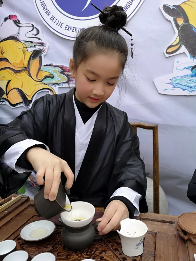 Dressed in Taoist robes, thelittle commentator explained to the audience attentively.
