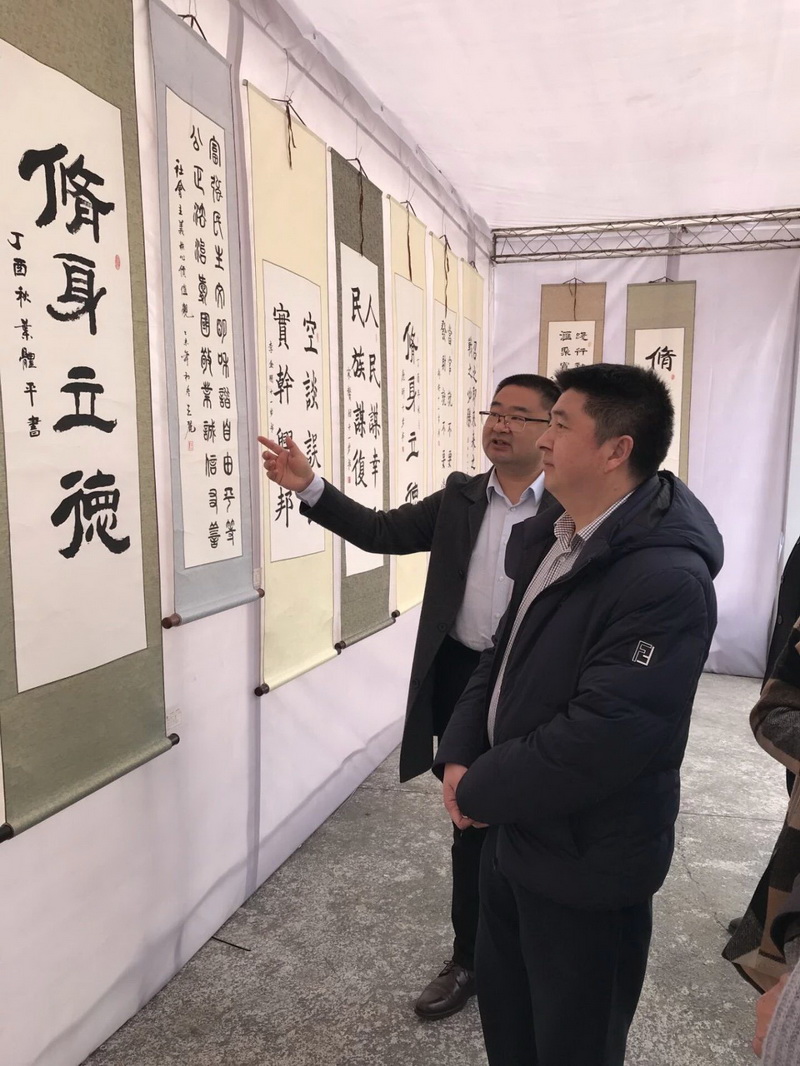 The calligraphy works of teachers andstudents were also well received. Eighteen calligraphy works were exhibited inthis art festival, and 14 of them were selected by our school.