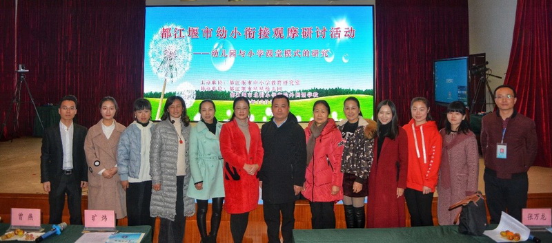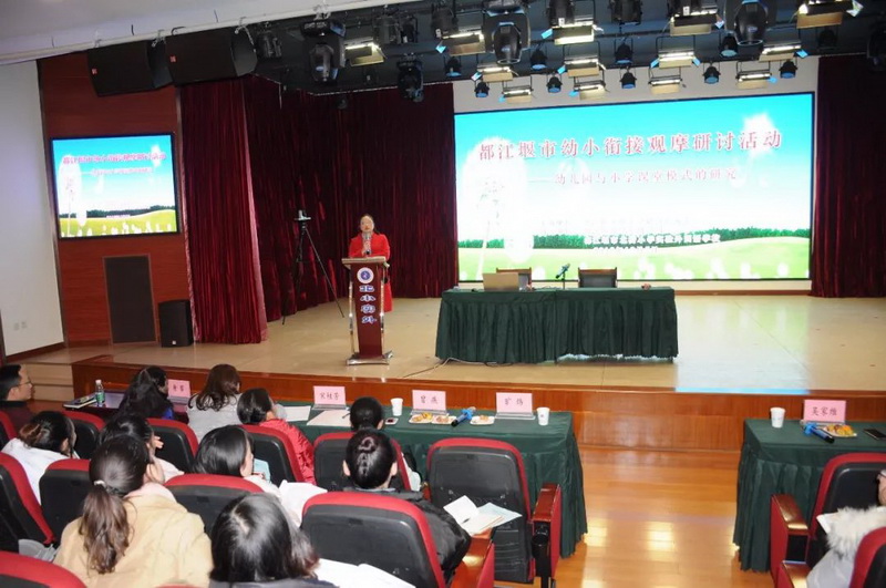 On December 5, 2018, our school carried out a research activity onthe model of connecting kindergarten and primary school in the city of Dujiangyan.This activity is sponsored by education teaching and research office of Dujiangyan city.Wu Jiawei, Kuang Wei, Zeng Yan, Zhang Wanlong, Song guifang, Huang yan and other directors of the Education Teaching and Research Office of the Primary Education Department of the Municipal Education Bureau were present for guidance. Thekindergarten heads, backbone teachers, first-grade teaching and research groupleaders, Chinese teachers and some parents' representatives participated inthis research activity.