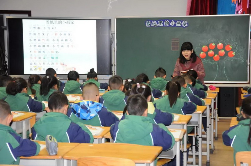 活动的第一项是同课异构《雪地里的孩子》。来自北街小学实验外国语学校的黄玉老师和来自星星幼儿园的刘谦老师,为大家呈现了两节精彩的课。