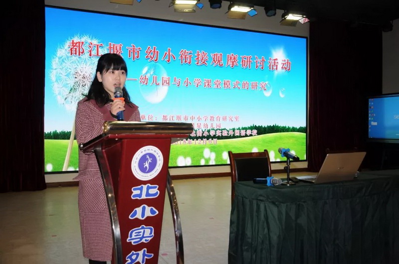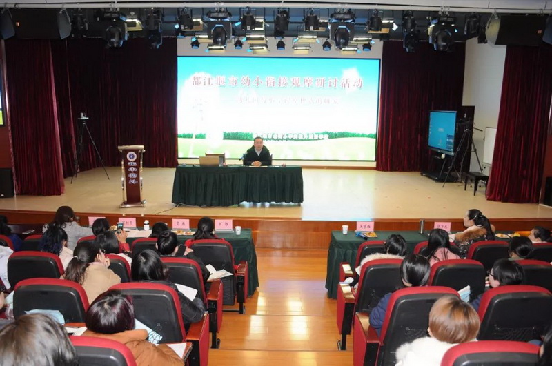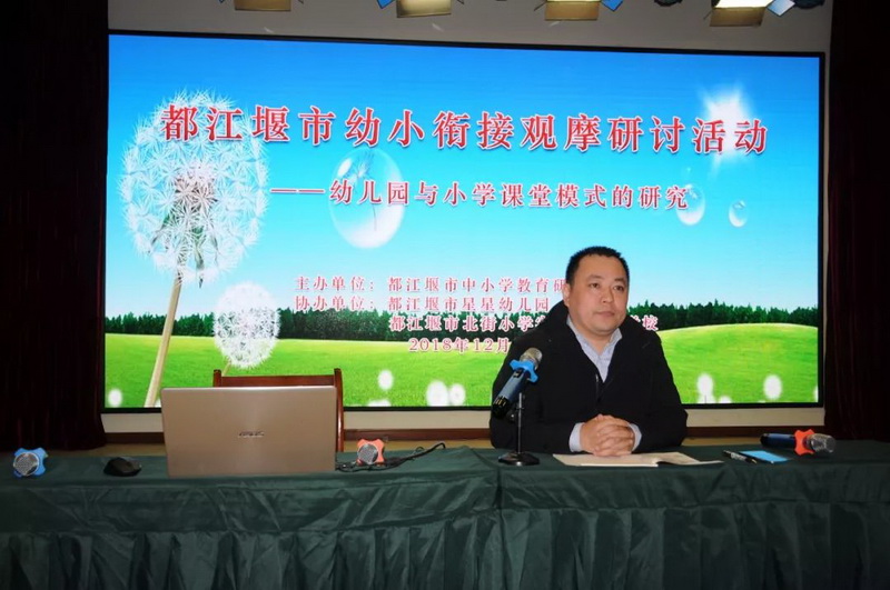 2018年12月5日,都江堰市幼小衔接课堂模式研究活动在北街小学实验外国语学校开展。本次活动由都江堰市教育教学研究室主办,北街小学实验外国语学校和都江堰市星星幼儿园承办。市教育局小教科吴家维科长、幼教科旷炜科长、曾燕副科长和教育教学研究室张万龙主任、宋桂芳老师、黄燕老师等莅临指导,各幼儿园园长、骨干教师和一年级教研组长、语文教师以及部分家长代表参加了本次研究活动。