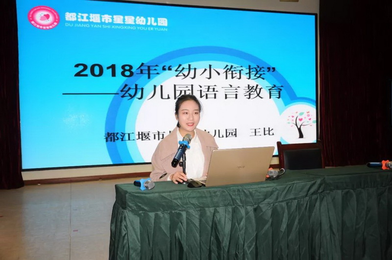 The second activity is to connect children with education specialmicro lecture. Teacher Wang Bi of Xingxing Kindergarten and teacher Li Kun ofour school made a detailed and in-depth explanation on the connection between young and young languages.