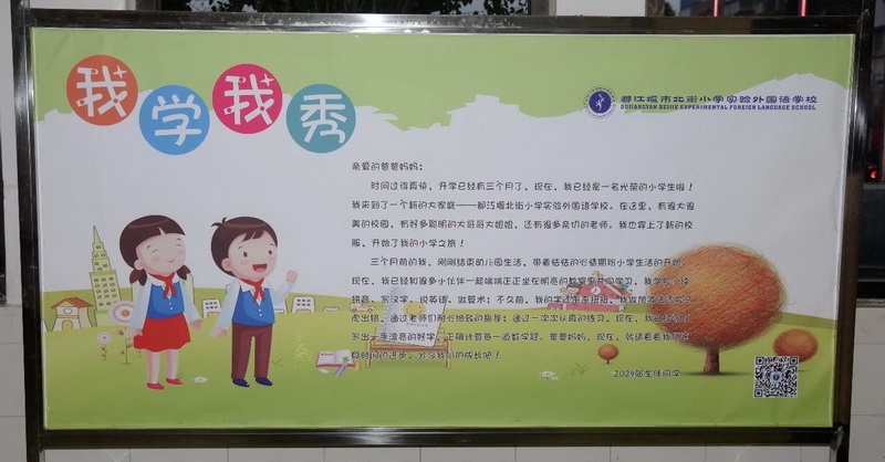 隐性课程展示:一年级学生带领爸爸妈妈参观:“我学我秀”作业展。