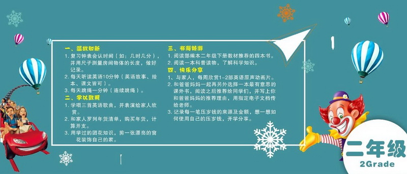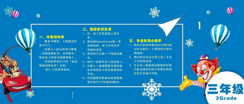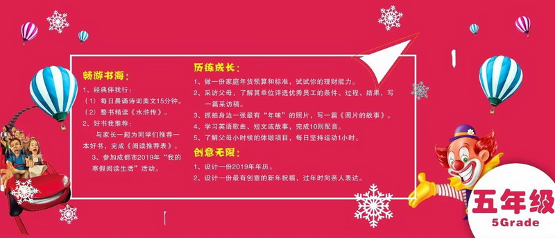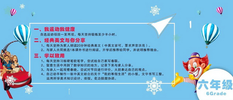 Bid farewell to the old year and usher inthe New Year. In a blink of an eye, we will open a happy winter holiday. Outsidethe active head, live water, talented and confident, only "play"If you go to school, you can make yourselfrich. Guided by the “Development of Core Competence”, the teachers practicedthe principle of “learning for fun” and customized a winter vacation guide forstudents.
