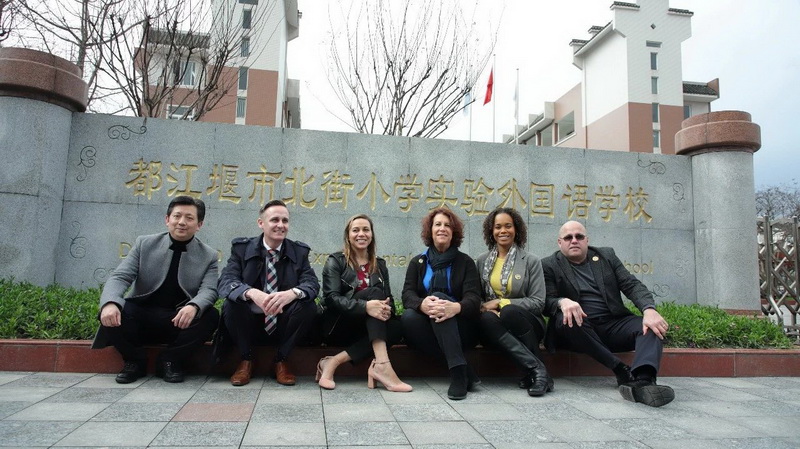 On March 6th, the preliminary argumentation meeting of the panda course based on international understanding education in our school was held under the chairmanship of the project leader Ma Changjun,Director Li Jianjun, deputy director Luo Shiyong ofDujiangyan education bureau foreign exchange office.Dr. MIGUEL HERNANDEZ, superintendent of the Manchester school district, New Jersey, USA,Mr. JOHNBOMBARDIER, deputy superintendent of the manta bay school district, NewJersey, Ms. NELYDA PEREZ, deputy superintendent of the manta bay school district, New Jersey.LISA BERMAN CHANCEY, principal of private middle School atNSU University School in Florida. Erin Brooks Randolph Brown, vice principal of Chartertech High School for the Performing Arts in New Jersey, and othermembers of the related project participated in the preliminary discussion meeting.