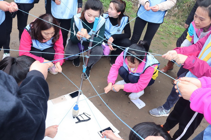 在教练的指导下大家齐心协力、共谋共想报队名喊口号、呐喊声和欢笑声混杂在一起好不热闹!拓展活动以年级组为单位进行分项积分赛,大家通过:《鼓动人心》、《珠行万里》、《呼吸的力量》、《横渡亚马逊》等分项进行排名积分!每一位队员都为自己的团队能争分夺秒,使出了浑身解数,大家彼此默契配合,在紧张激烈的比赛中充满了欢声笑语,团队意识与集体荣誉感被体现得淋漓尽致。
