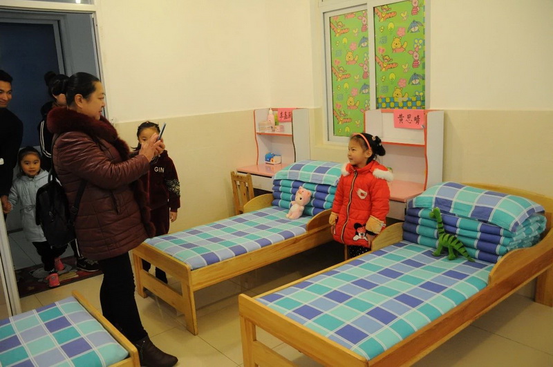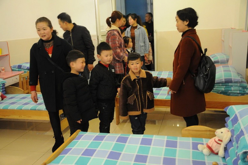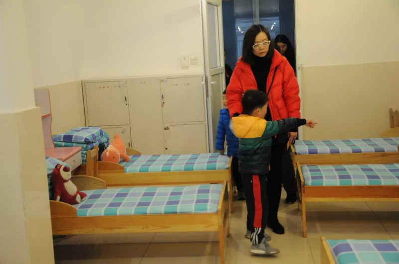 然后,小朋友们来到了哥哥姐姐们的宿舍。小朋友和家长们对如此整洁的床铺都赞叹不已,生活老师告诉他们这都是一年级的孩子们自己整理的。
